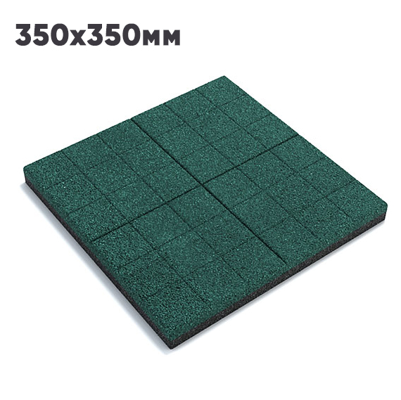 Резиновая плитка размером 350 х 350 мм с рельефным узором в виде сетки. Благодаря этой рельефной поверхности обеспечивается более надёжное сцепление с подошвой обуви, позволяя не скользить даже при дожде и гололёде.